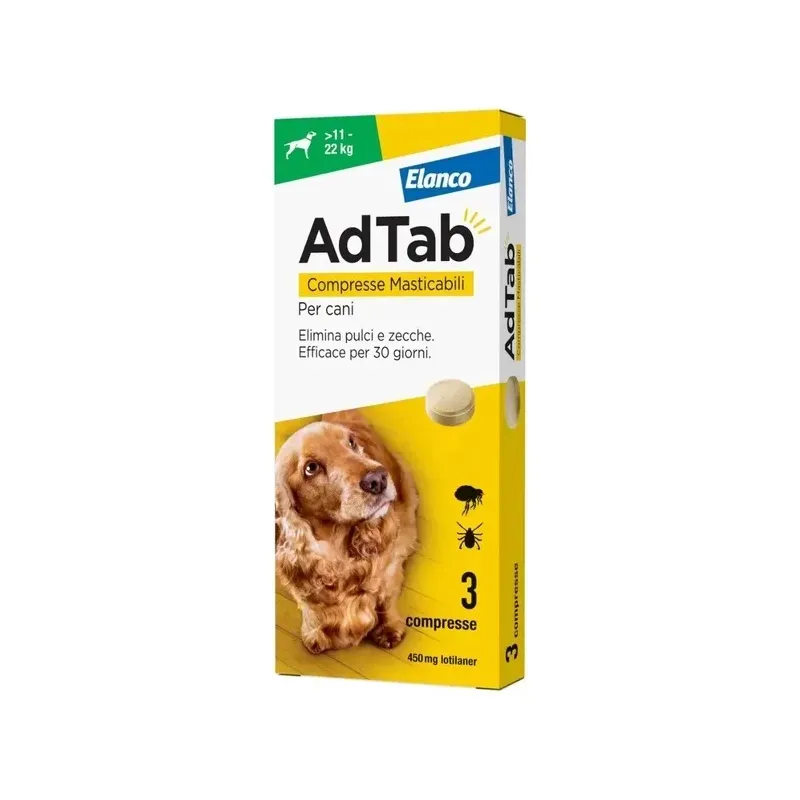Elanco AdTab Compresse Masticabili per Cani da 11Kg a 22Kg (3 cpr 450mg)