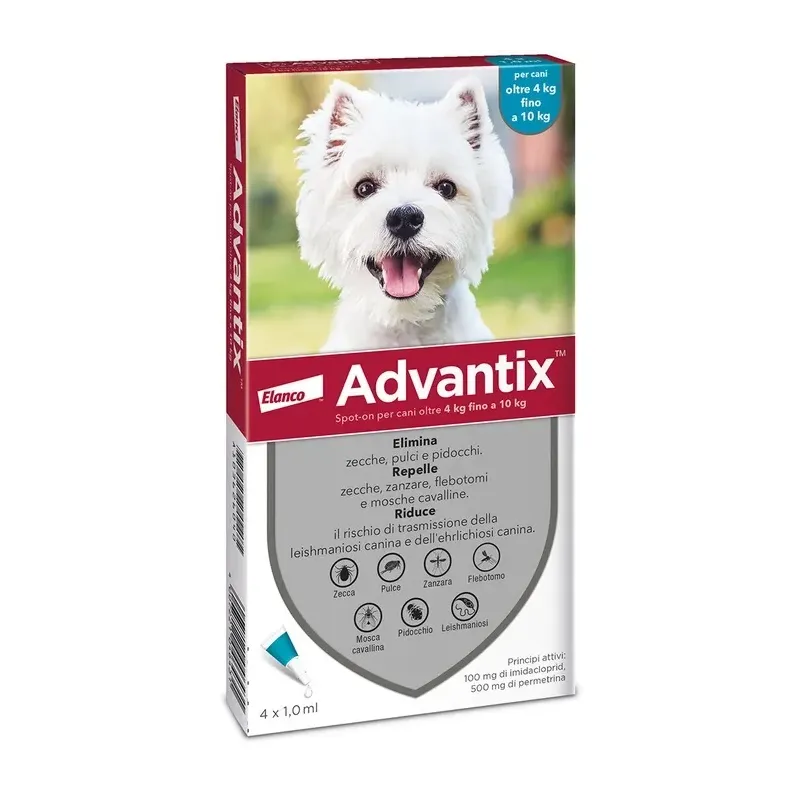 Elanco Advantix Spot-On per Cani da 4Kg a 10Kg (confezione da 4 pipette da 1ml)