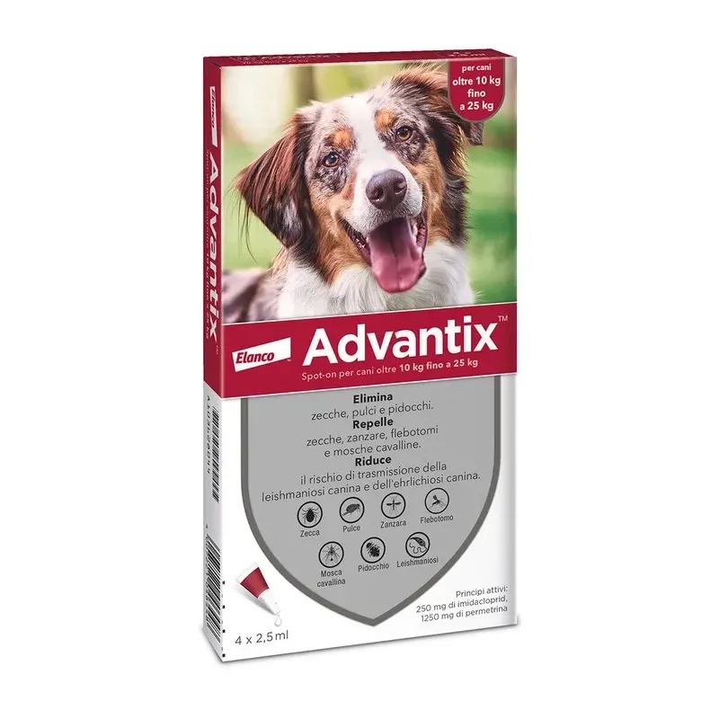 Elanco Advantix Spot-On per Cani da 10Kg a 25Kg (confezione da 4 pipette da 2,5ml)