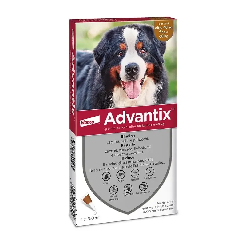 Elanco Advantix Spot-On per Cani oltre 40Kg fino a 60Kg (confezione da 4 pipette da 6,0ml)