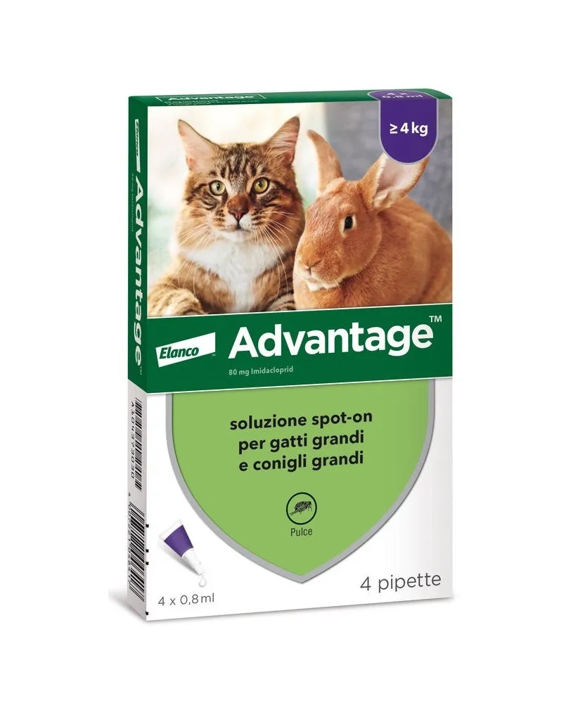 Elanco Advantage 80mg Spot-On per Gatti e Conigli grandi - peso pari o superiore a 4Kg (confezione da 4 pipette)