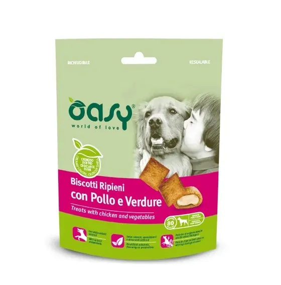 Oasy Snack Dog - BISCOTTI ripieni con POLLO e VERDURE 80 gr