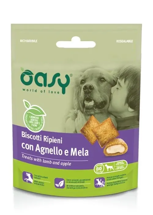 Oasy Snack Dog - BISCOTTI ripieni con AGNELLO e MELA 80 gr