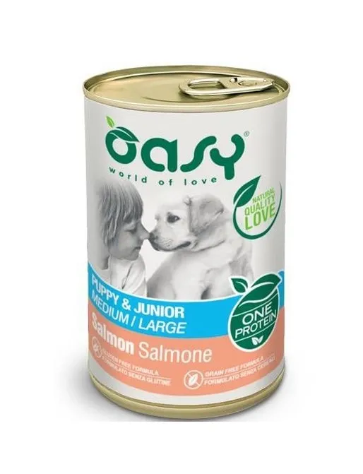 Oasy Wet Dog One Animal Protein - PUPPY MEDIUM/LARGE Patè Salmone - Lattina 400 gr