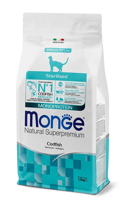 Monge Adult Cat Monoprotein Sterilised Merluzzo – 1,5 Kg