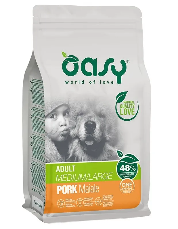 Oasy Dry Dog One Animal Protein - ADULT MEDIUM/LARGE MAIALE - 12 Kg