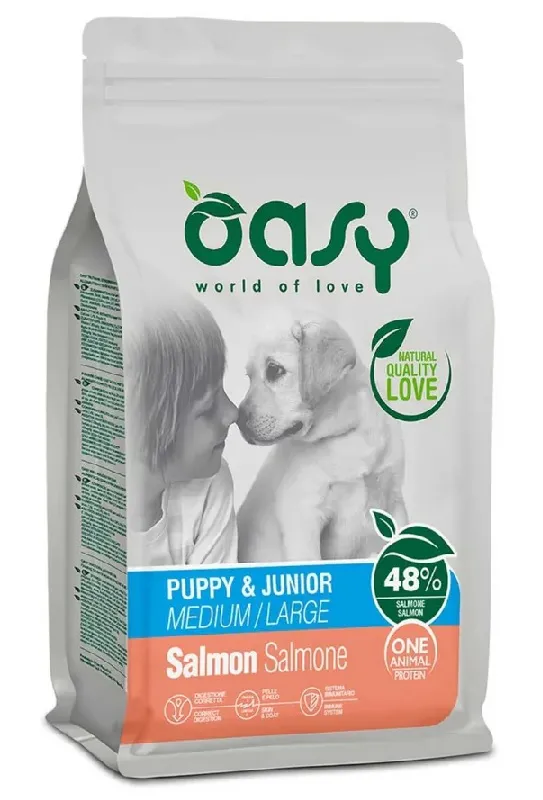 Oasy Dry Dog One Animal Protein - PUPPY MEDIUM/LARGE SALMONE - 12 Kg