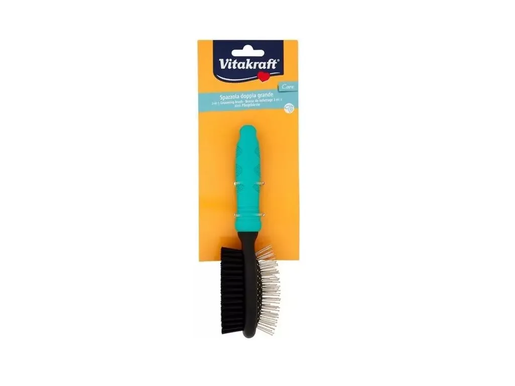 Spazzola 2in1 per la cura del pelo, con impugnatura antiscivolo in gomma.