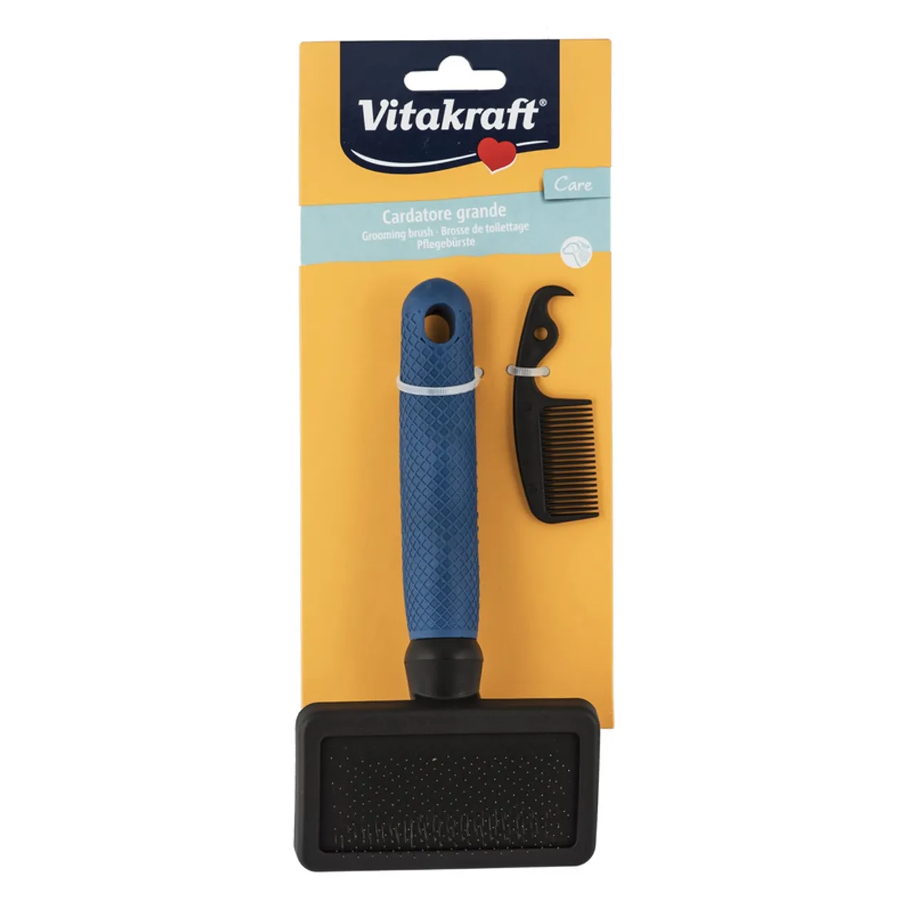 Realizzato con materiali di prima qualità. L’uso di questo cardatore consente di rimuovere il pelo morto ed infeltrito. Consigliato per cani di taglia media e grande, ed è dotato di un pettinino per pulire la spazzola.