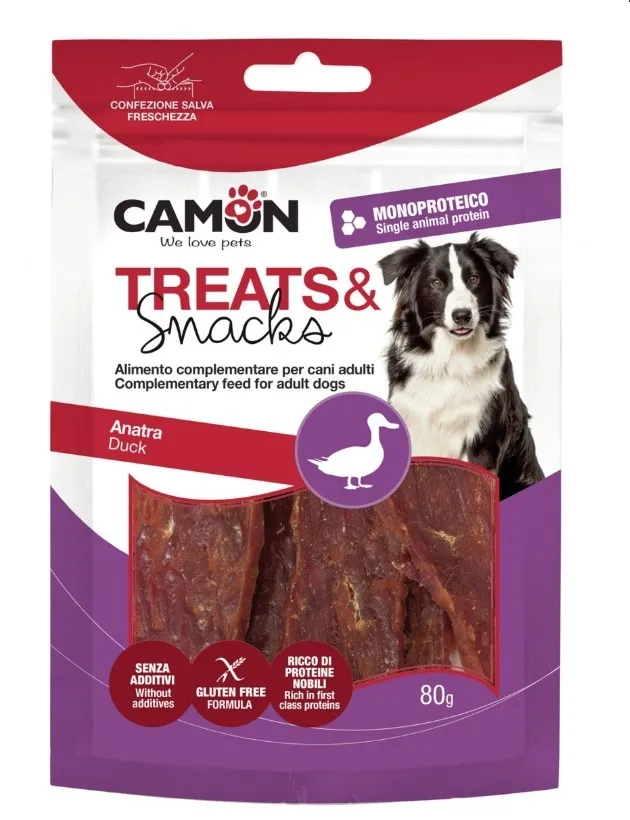 Deliziosi spuntini ricompensa per cani adulti a base di anatra.
