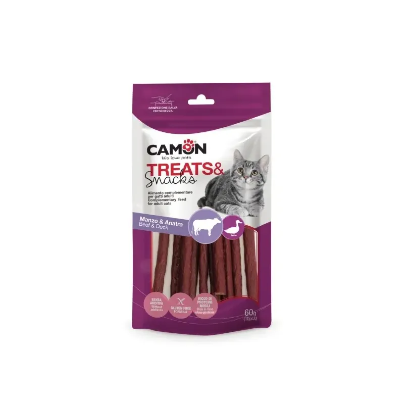 Facili da masticare, anche per gatti più anziani, confezione da 10g, comoda da portare ovunque.