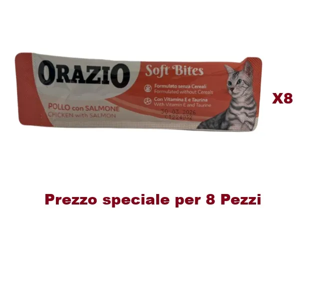 ORAZIO BUTCHER SOFT BITES - Pollo e salmone (8 bustine da 10gr)_(scadenza 30-03-2026)