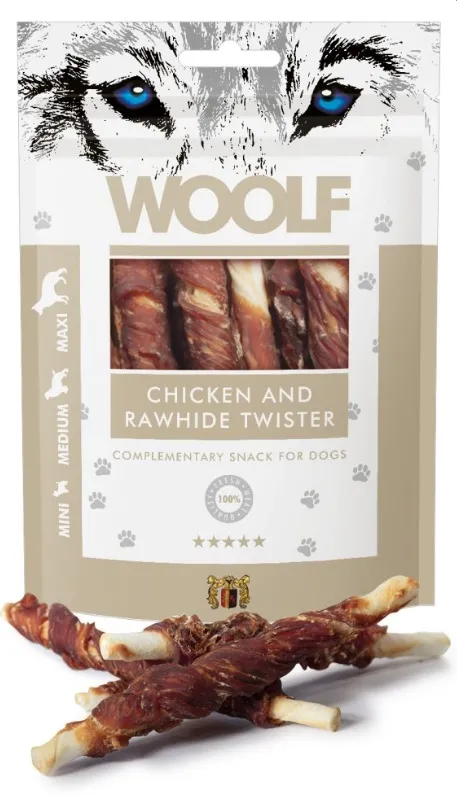Gli snack Woolf sono appositamente studiati per cani di tutte le taglie. Questi snack Twister con pollo e pelle grezza sono realizzati al 100% con fonti proteiche per garantire la massima qualità e il miglior apporto nutrizionale. Lo snack, una volta cotto, è confezionato senza additivi chimici, conservanti o coloranti.