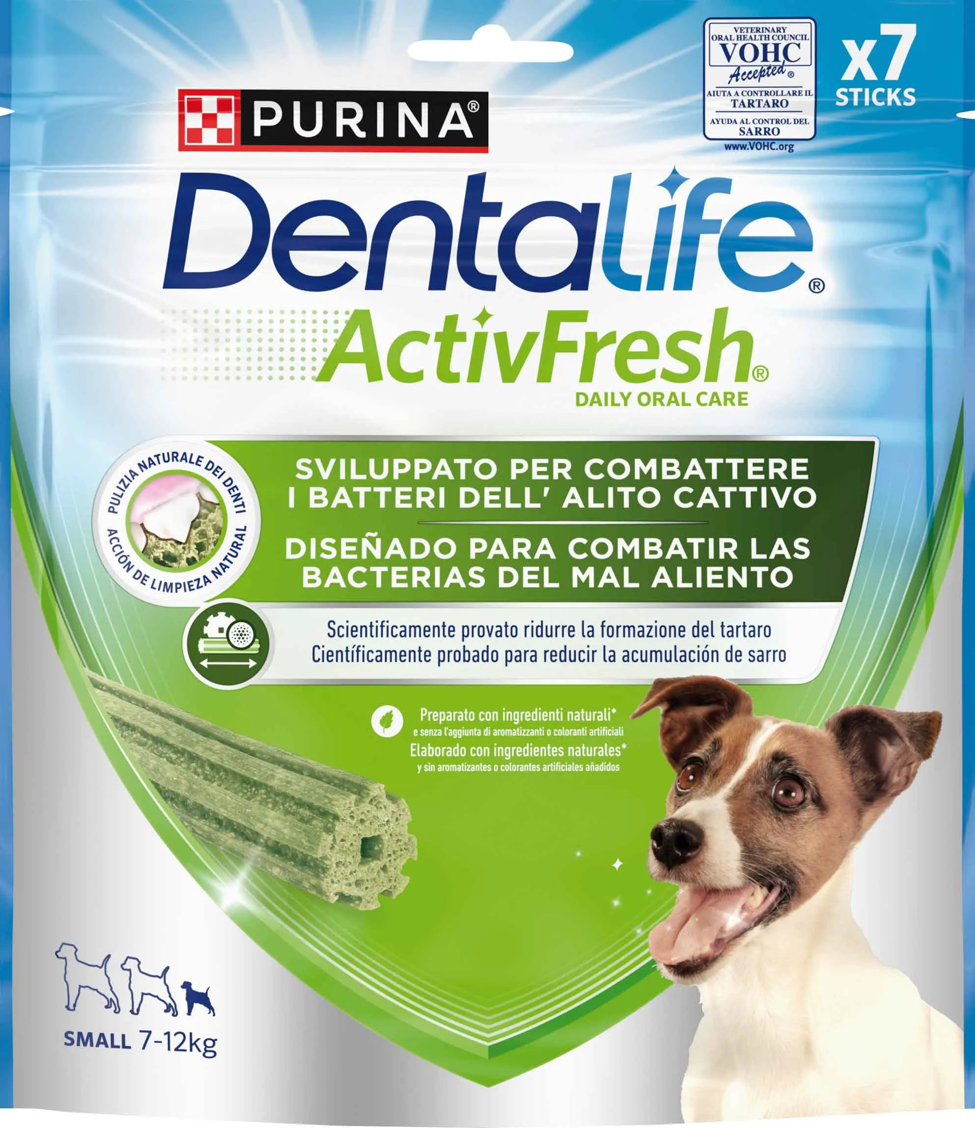 Purina Dentalife ActivFresh, grazie alla spirulina naturale e al miele, è stato studiato per neutralizzare i batteri responsabili dell’alito cattivo, invece di limitarsi a mascherarlo. ActivFresh ha la stessa forma, dimensione e consistenza porosa e morbida di Dentalife che è scientificamente provato ridurre la formazione del tartaro.