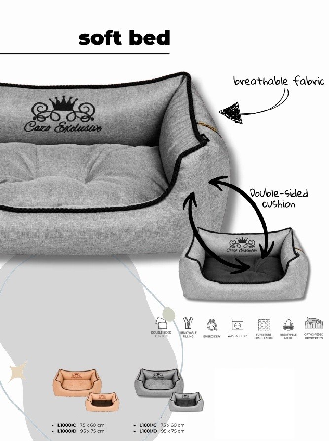 Morbido lettino rettangolare, sfoderabile e lavabile a 30° con cuscino double face e proprietà ortopediche.