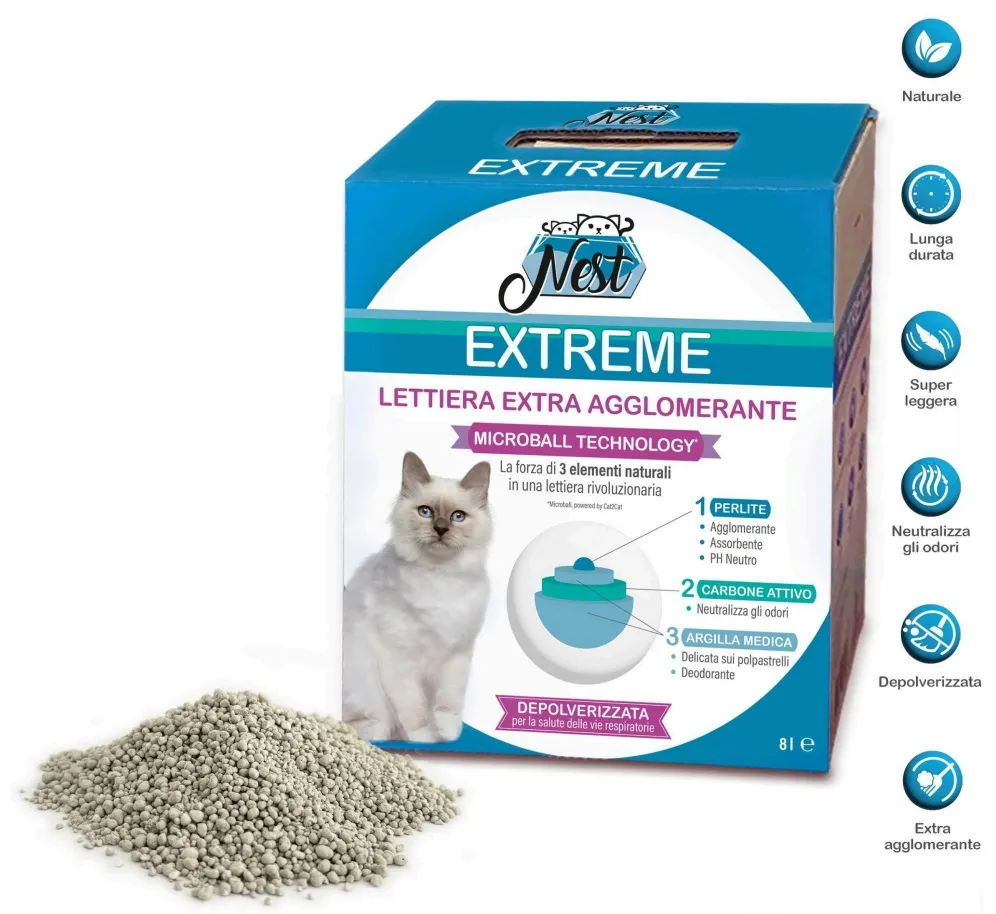 NEST LETTIERA EXTREME PERLITE EXTRA AGGLOMERANTE AL CARBONE ATTIVO 8 LITRI