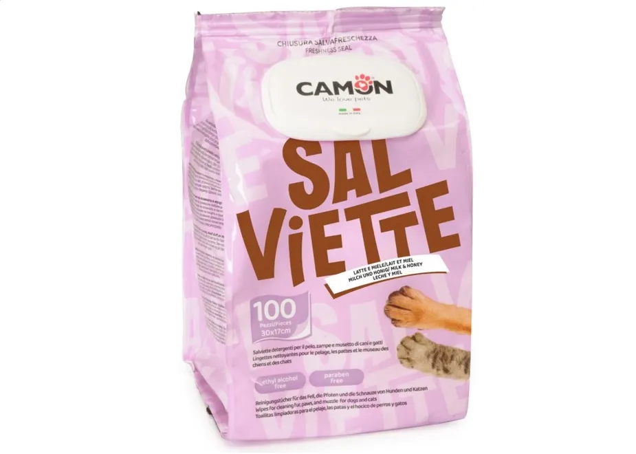Camon Salviette Latte&Miele Maxi formato per cani e gatti (100 pezzi)