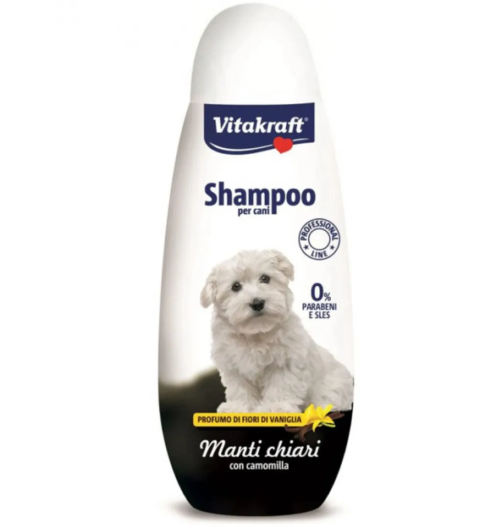 Vitakraft Shampoo manti chiari svolge un’accurata azione detergente lasciando il manto pulito e gradevolmente profumato ai fiori di vaniglia e mandorle, rispettando il naturale pH cutaneo dell’animale. E’ arricchito con camomilla, che schiarisce il pelo, riduce la tendenza all’ingiallimento aiutando a riportare il manto chiaro al suo colore naturale.