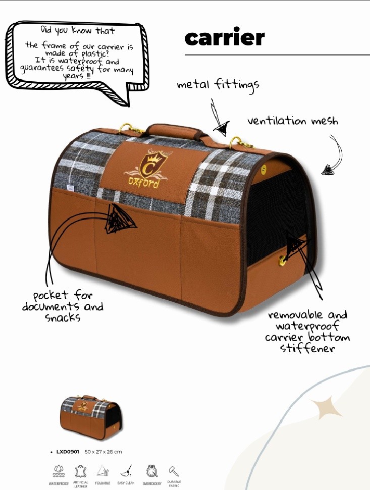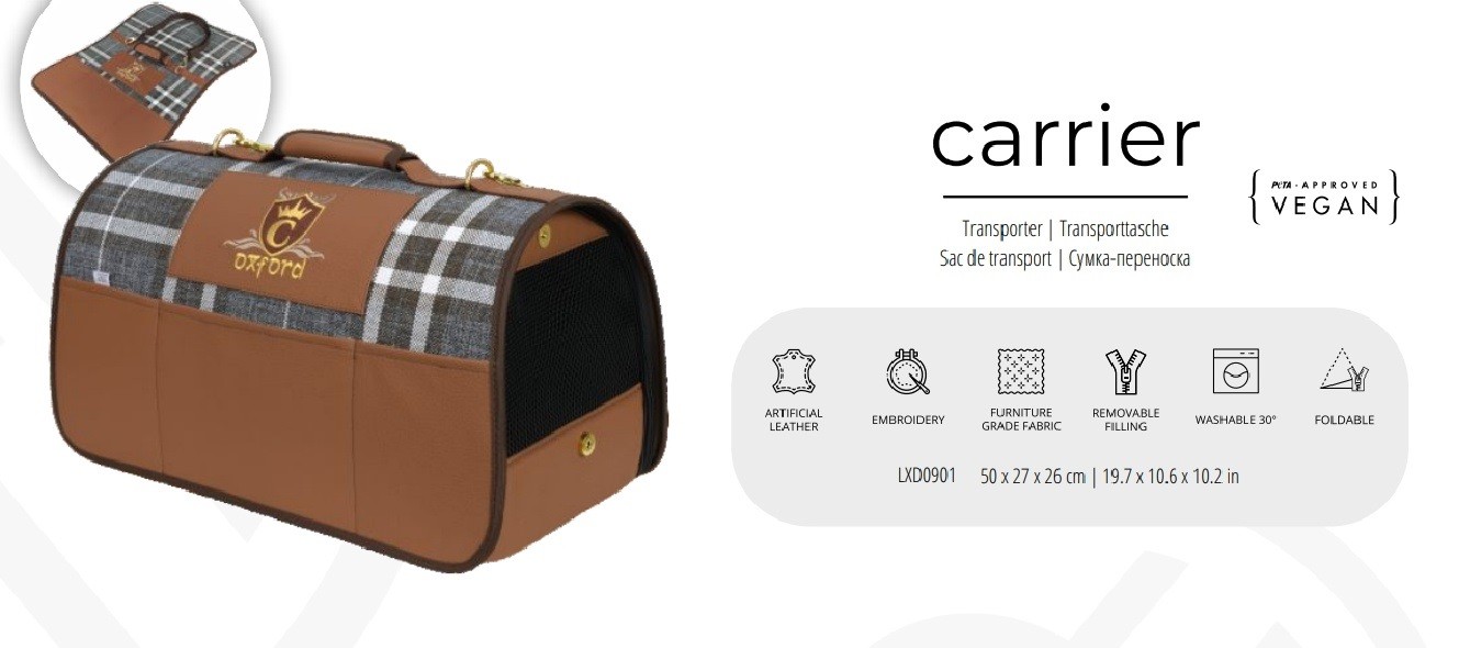 Trasportino pieghevole realizzato in tessuto resistente a danni e sporco. Ogni volta che vi sposterete, garantiranno al vostro piccolo amico un trasporto sicuro. Materiali di alta qualità, combinazione di tessuto a quadretti e similpelle con ricami esclusivi.