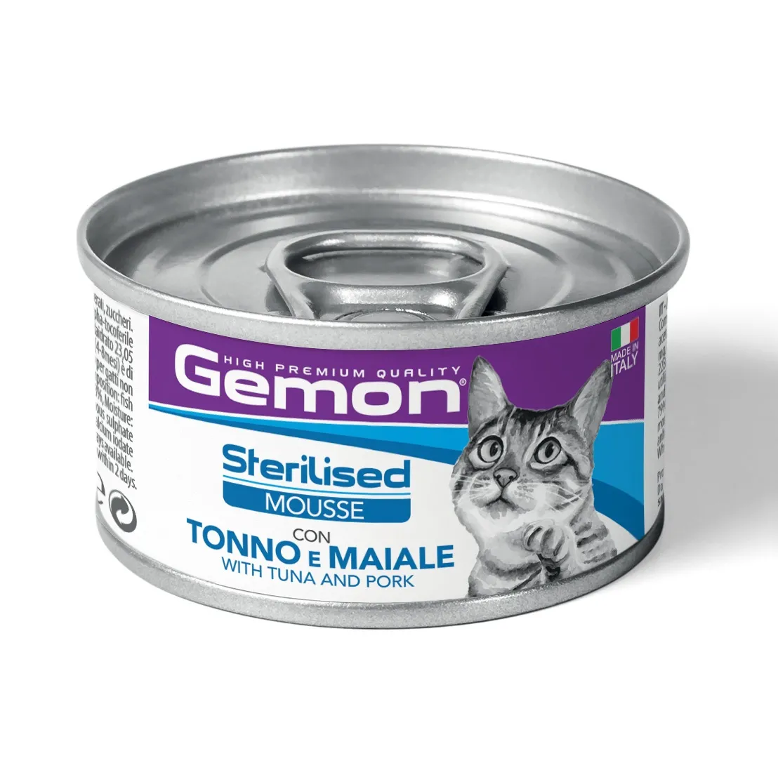 Alimenti dall’elevata appetibilità, studiati su misura per le diverse età e stili di vita dell’animale. Senza coloranti e conservanti artificiali aggiunti. Made in Italy e No Cruelty Test. GEMON MOUSSE CON TONNO E MAIALE è un alimento completo per gatti adulti sterilizzati, formulato per fornire tutti i nutrienti necessari per la vitalità quotidiana dei nostri amici a quattro zampe.